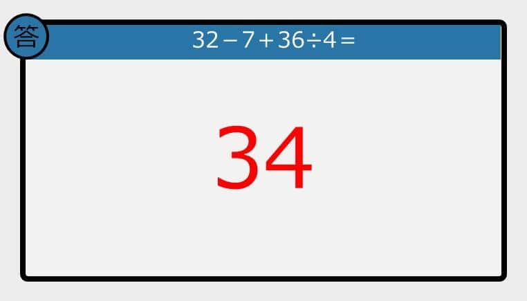 【解けなかったら恥ずかしい?】32-7+36÷4は?《計算クイズ》