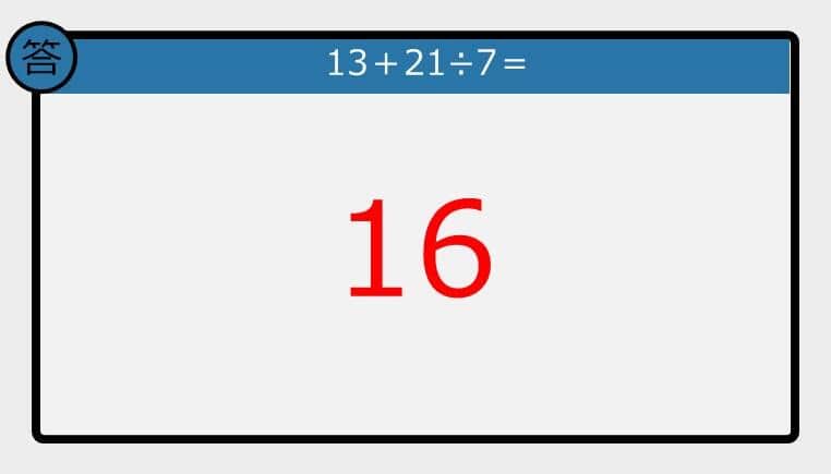 【解けなかったら恥ずかしい?】13+21÷7は?《計算クイズ》