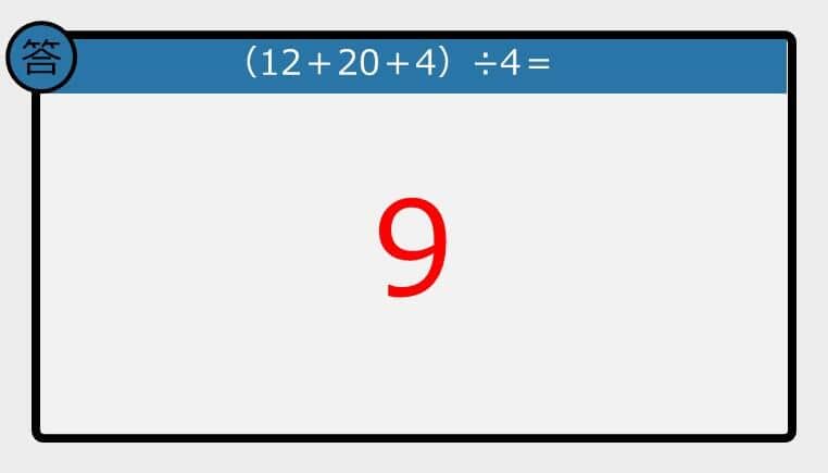 【解けなかったら恥ずかしい?】(12+20+4)÷4は?《計算クイズ》