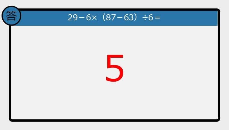 【解けなかったら恥ずかしい?】29-6×(87-63)÷6は?《計算クイズ》