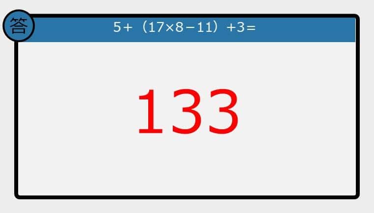【解けなかったら恥ずかしい?】5+(17×8-11)+3は?《計算クイズ》
