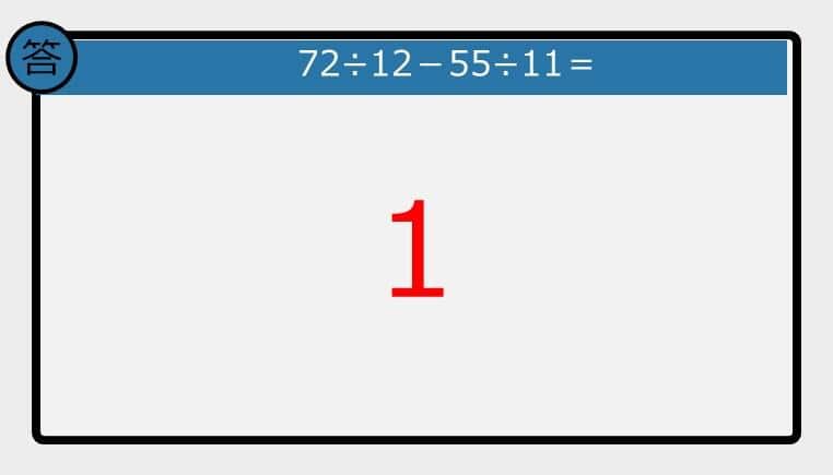 【解けなかったら恥ずかしい?】72÷12-55÷11は?《計算クイズ》