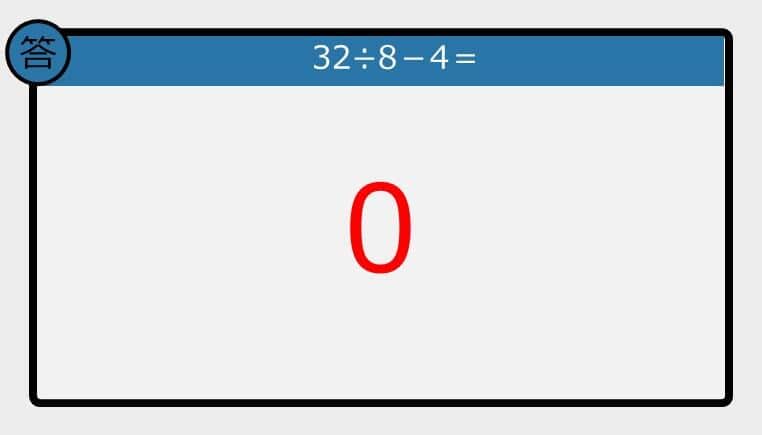【解けなかったら恥ずかしい?】32÷8-4は?《計算クイズ》