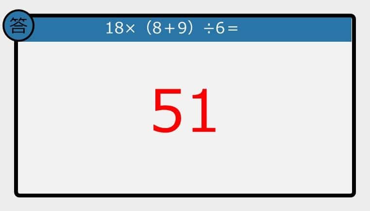 【計算力の衰えチェック】18×(8+9)÷6は?《算数クイズ》
