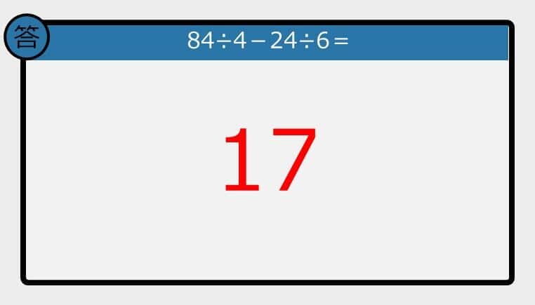 【解けなかったら恥ずかしい?】84÷4-24÷6は?《計算クイズ》