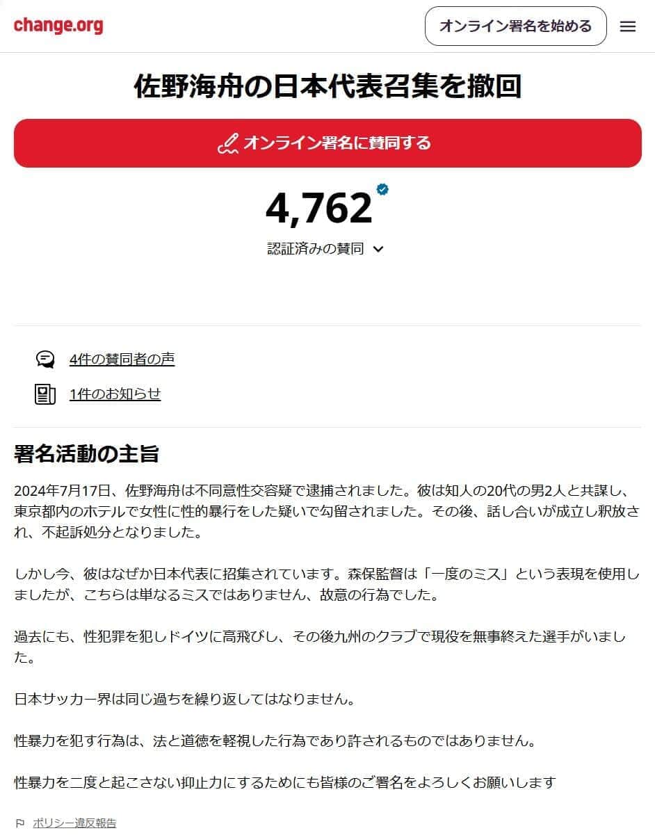 佐野海舟、サッカー日本代表復帰に賛否両論 オンライン署名で「撤回」要求の動きも...JFAはどう受け止めた