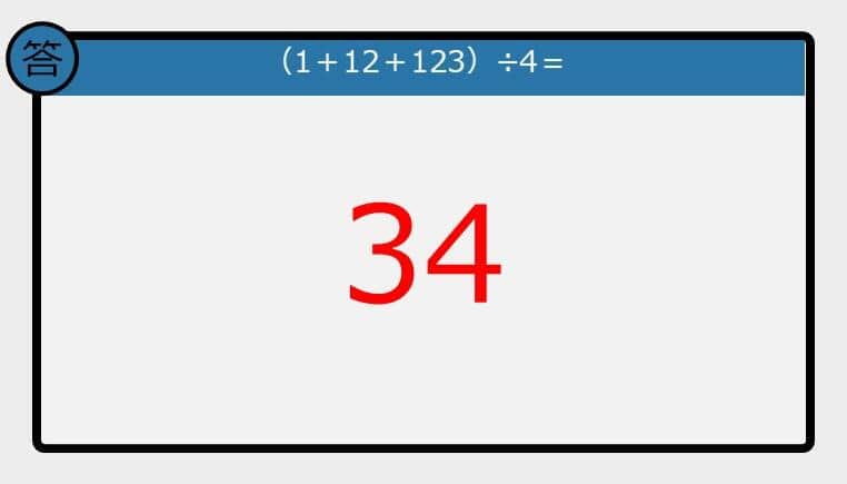 【解けなかったら恥ずかしい?】(1+12+123)÷4は?《計算クイズ》