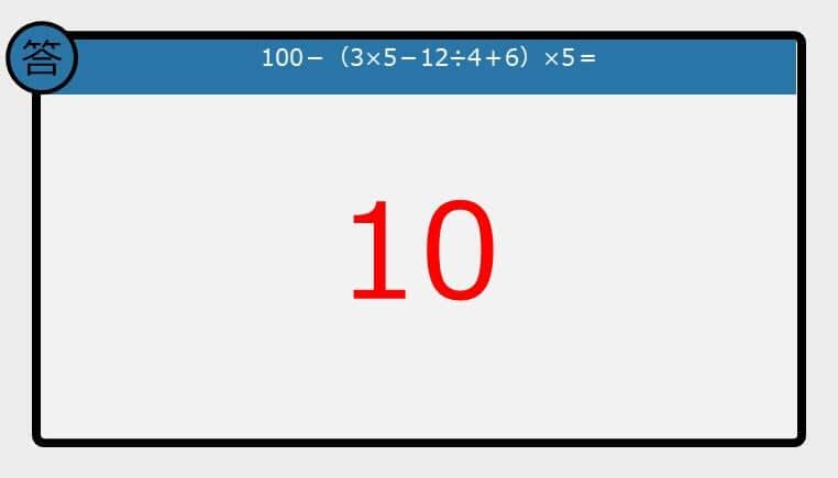 【解けなかったら恥ずかしい?】100-(3×5-12÷4+6)×5は?《計算クイズ》