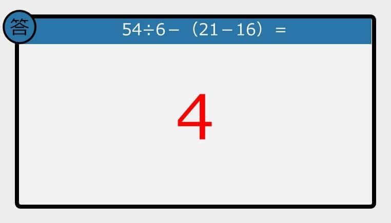 【解けなかったら恥ずかしい?】54÷6-(21-16)は?《計算クイズ》