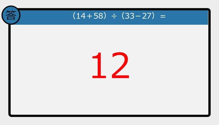 【解けなかったら恥ずかしい?】(14+58)÷(33-27)は?《計算クイズ》