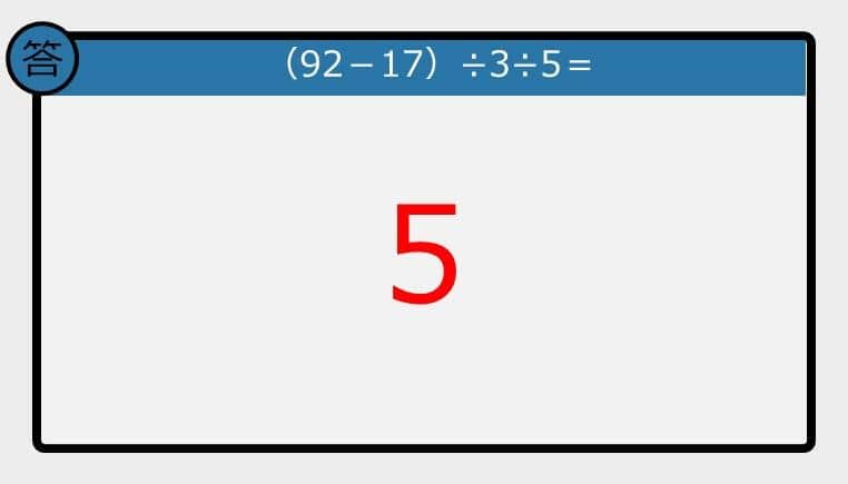 【解けなかったら恥ずかしい?】(92-17)÷3÷5は?《計算クイズ》