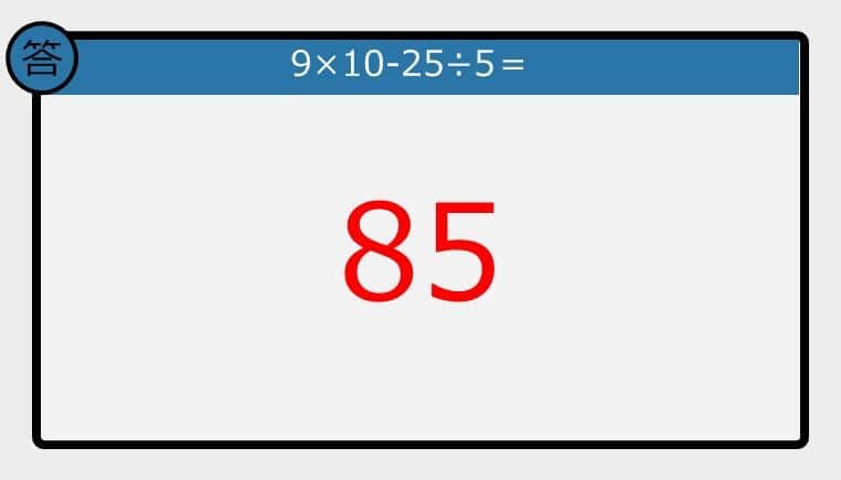 【解けなかったら恥ずかしい?】9×10-25÷5は?《計算クイズ》