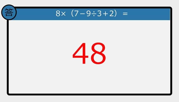 【解けなかったら恥ずかしい?】8×(7-9÷3+2)は?《計算クイズ》