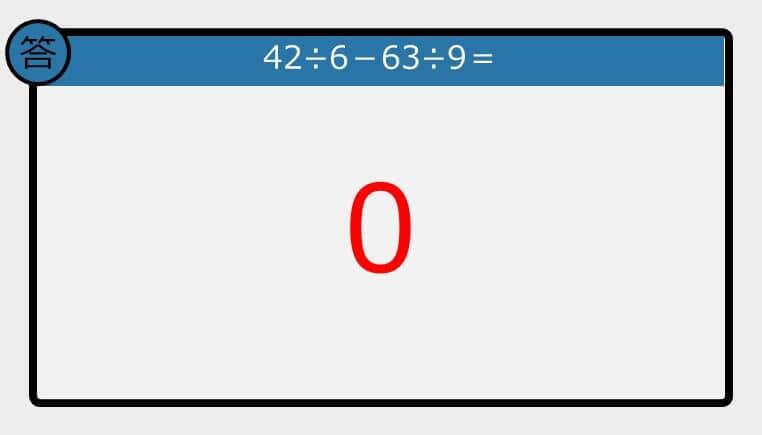 【解けなかったら恥ずかしい?】42÷6-63÷9は?《計算クイズ》