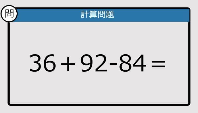 【解けなかったら恥ずかしい?】36+92-84は?《計算クイズ》