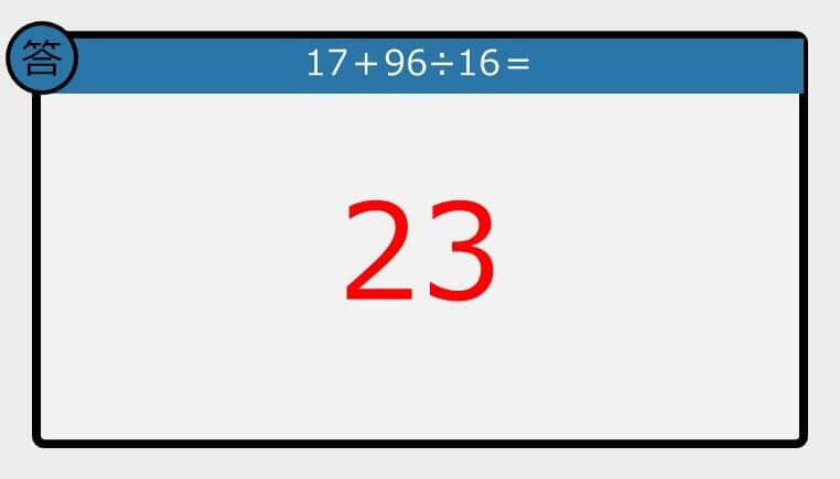 【解けなかったら恥ずかしい?】17+96÷16は?《計算クイズ》