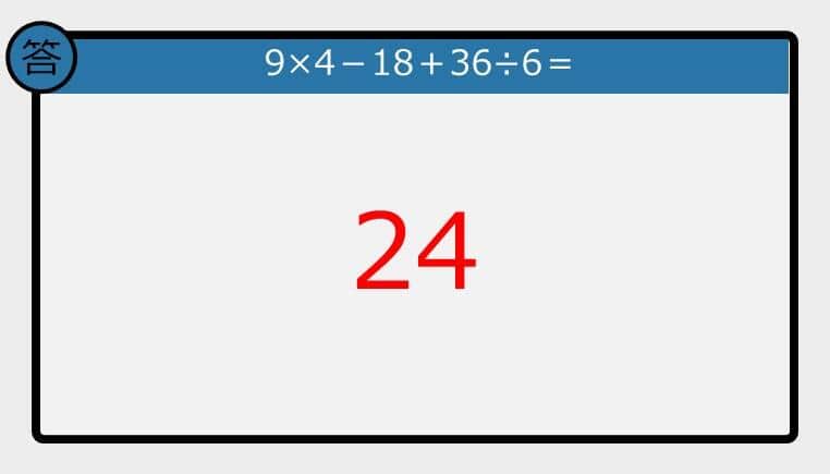 【解けなかったら恥ずかしい?】9×4-18+36÷6は?《計算クイズ》