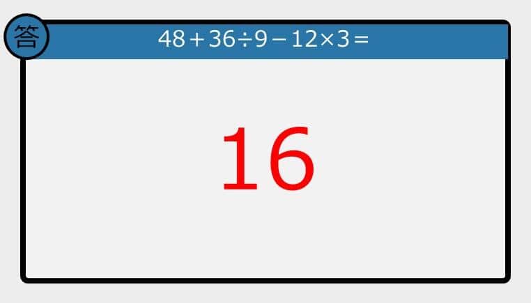 【解けなかったら恥ずかしい?】48+36÷9-12×3は?《計算クイズ》