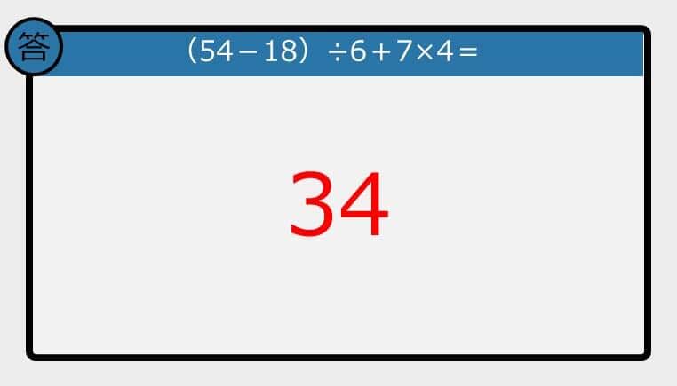 【解けなかったら恥ずかしい?】(54-18)÷6+7×4は?《計算クイズ》