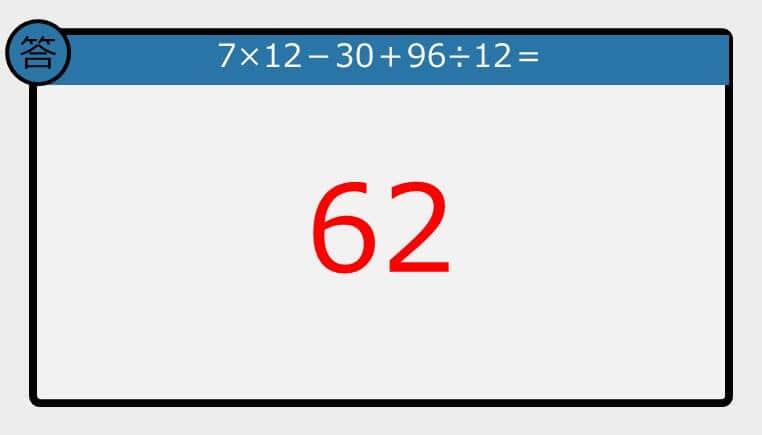 【解けなかったら恥ずかしい?】7×12-30+96÷12は?《計算クイズ》