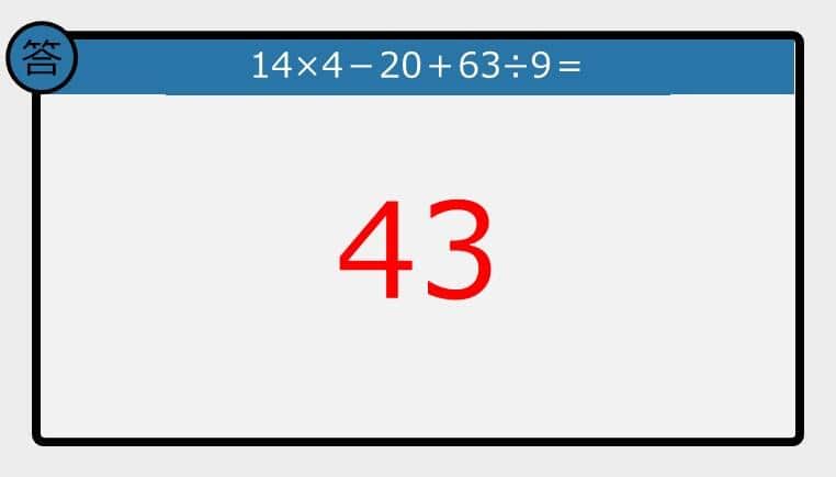 【解けなかったら恥ずかしい?】14×4-20+63÷9は?《計算クイズ》
