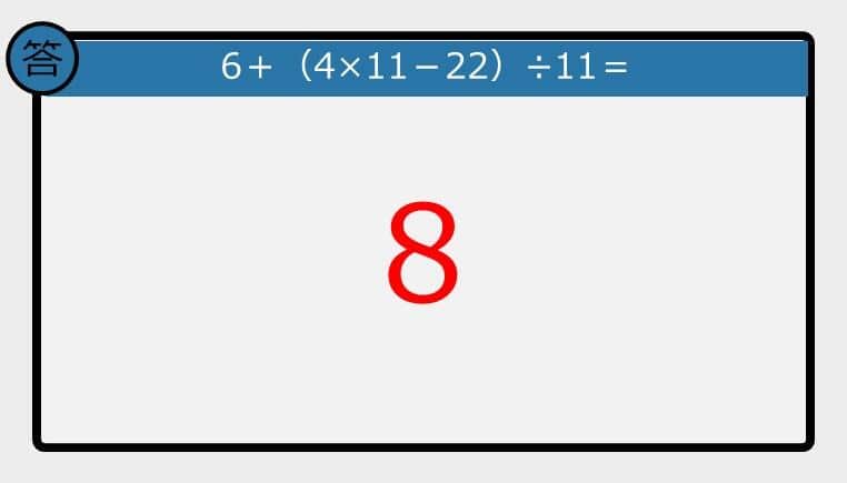 【解けなかったら恥ずかしい?】6+(4×11-22)÷11は?《計算クイズ》