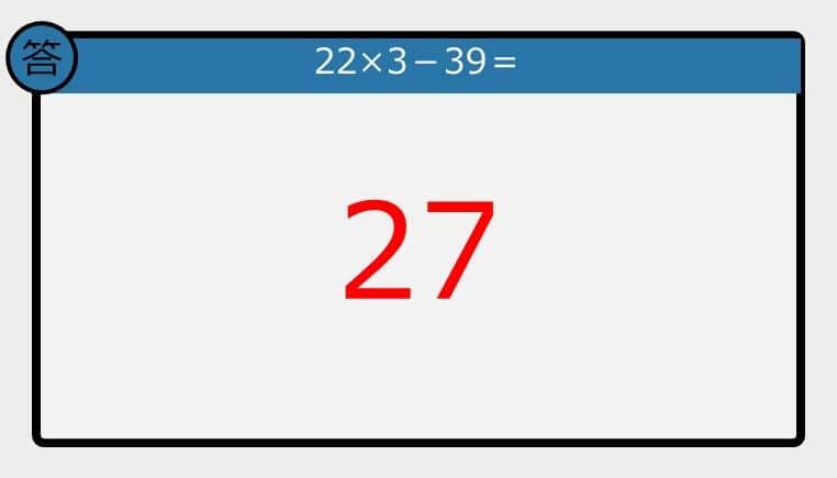 【解けなかったら恥ずかしい?】22×3-39は?《計算クイズ》