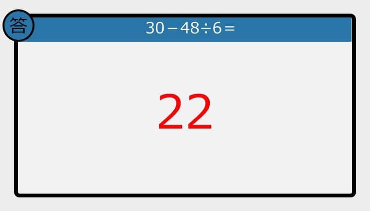 【解けなかったら恥ずかしい?】30-48÷6は?《計算クイズ》
