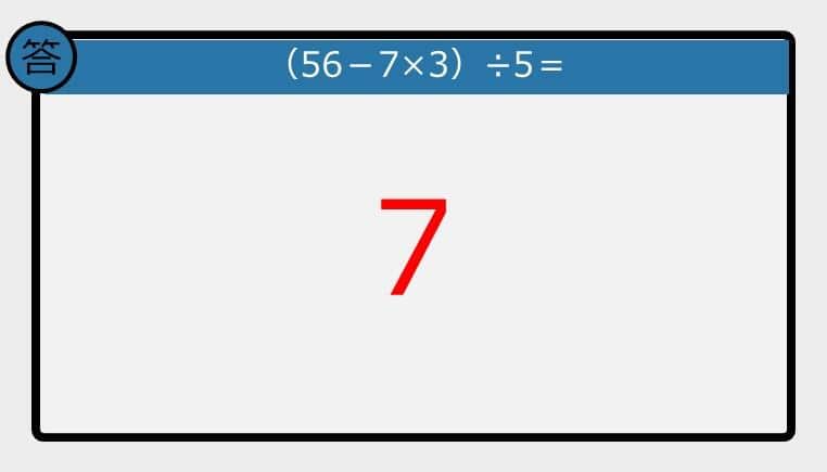 【解けなかったら恥ずかしい?】(56-7×3)÷5は?《計算クイズ》