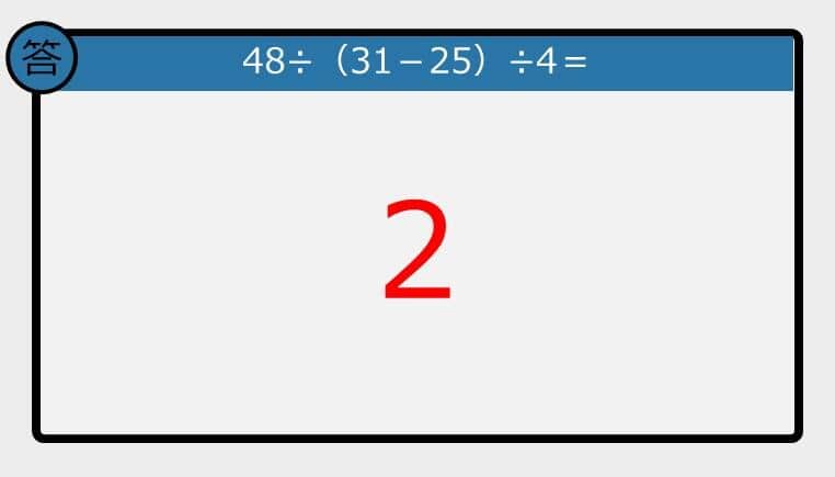 【解けなかったら恥ずかしい?】 48÷(31-25)÷4は?《計算クイズ》