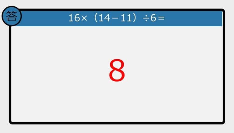 【解けなかったら恥ずかしい?】16×(14-11)÷6は?《計算クイズ》