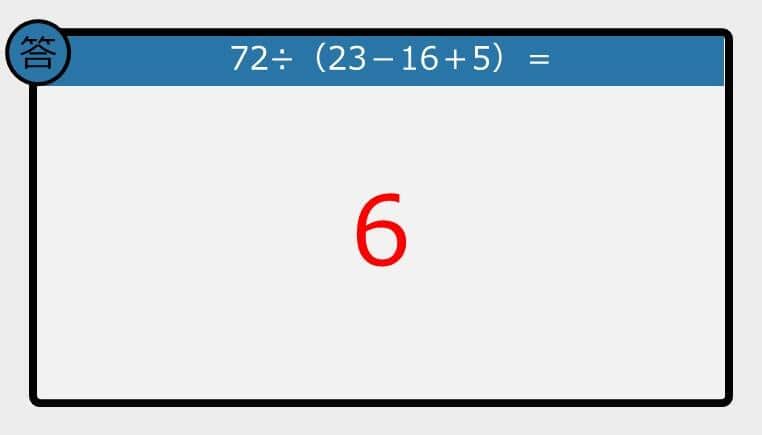 【解けなかったら恥ずかしい?】72÷(23-16+5)は?《計算クイズ》
