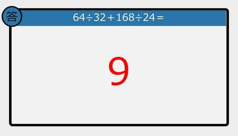 【解けなかったら恥ずかしい?】64÷32+168÷24は?《計算クイズ》