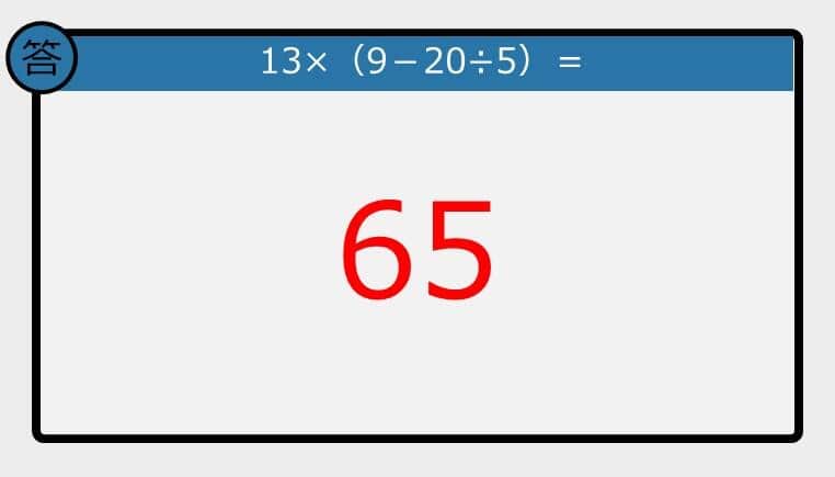 【解けなかったら恥ずかしい?】13×(9-20÷5)は?《計算クイズ》
