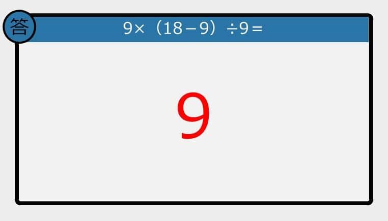 【解けなかったら恥ずかしい?】9×(18-9)÷9は?《計算クイズ》