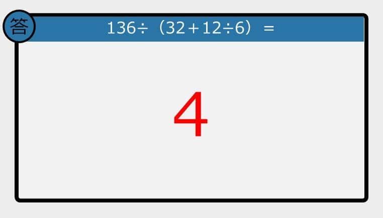 【解けなかったら恥ずかしい?】136÷(32+12÷6)は?《計算クイズ》