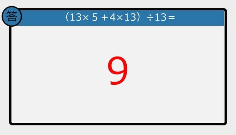 【解けなかったら恥ずかしい?】(13×5+4×13)÷13は?《計算クイズ》