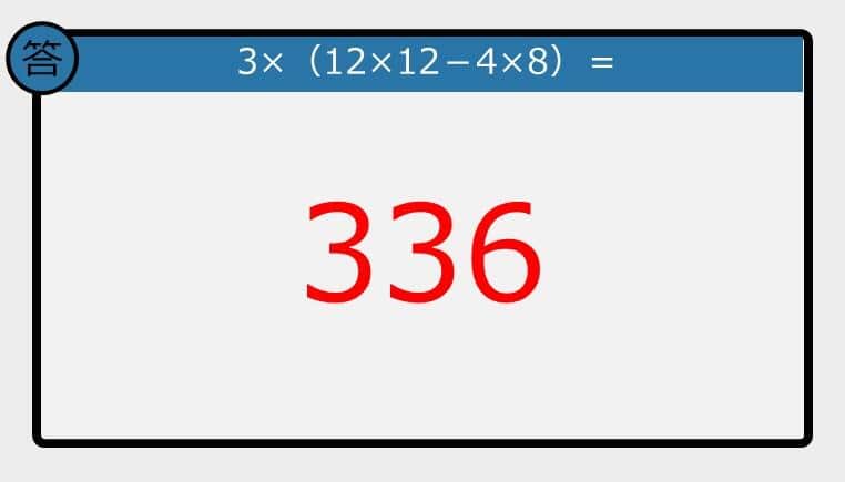 【解けなかったら恥ずかしい?】3×(12×12-4×8)は?《計算クイズ》