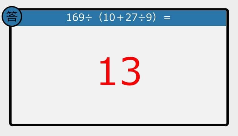 【解けなかったら恥ずかしい?】169÷(10+27÷9)は?《計算クイズ》