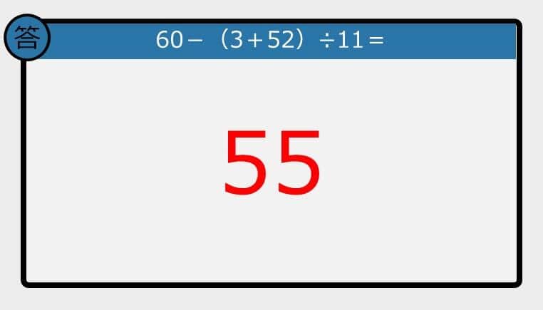 【解けなかったら恥ずかしい?】60-(3+52)÷11は?《計算クイズ》