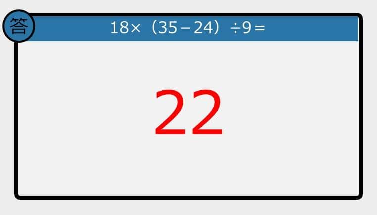 【解けなかったら恥ずかしい?】18×(35-24)÷9は?《計算クイズ》