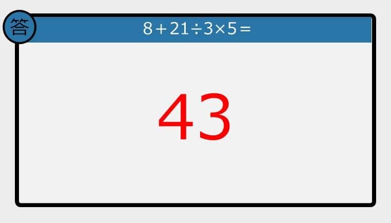 【解けなかったら恥ずかしい?】8+21÷3×5は?《計算クイズ》