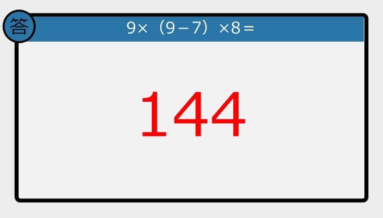 【解けなかったら恥ずかしい?】9×(9-7)×8は?《計算クイズ》