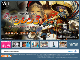 セガは、任天堂の家庭用ゲーム機「Wii」用ゲームソフト「不思議のダンジョン 風来のシレン3 ~からくり屋敷の眠り姫~」を2008年2月28日に発売する。大人気ゲームソフトシリーズの「風来のシレン」が家庭用ゲーム機に登場するのは約8年ぶり。ダンジョンに入るたびにダンジョン内部の構造が変わるお馴染みのシステム。武器と知恵で攻略していく。