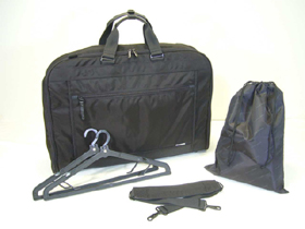 サイズは40センチ×60センチ×16センチで、2~3泊分の荷物が収納可能。専用のプラスチックハンガー2本とシューズケースが付いていて、急な出張にも対応できる。携帯電話ポケットのほか、小物類やシャツ類の収納に適したファスナーポケットとオープンポケットを配置し、実用性を高めている。