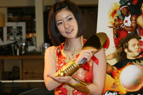 卓球をテーマにしたハリウッド映画「燃えよ!ピンポン」。その国内公開を約1か月後に控えた2008年2月25日、都内の卓球バーでPRイベントが開かれ、カラフルなコスチュームでのプレーで知られるプロ卓球選手の四元奈生美さん(29)が映画の魅力をアピールした。