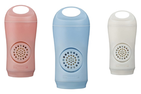 パイオニアが発売する「AS-PS66」パイオニアは、持ち運びができる防水スピーカー「AS-PS66」3機種を2008年4月上旬に発売する。2000年に初代が発売された「HappyAQUA(ハッピーアクア)」シリーズの最新モデルで、付属のS字フックを使って風呂場のタオル掛けなどに吊り下げるなどできるため、場所を取らずに済む。オープン価格だが、店頭想定価格は3機種とも4000円前後。