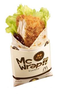 日本マクドナルド「マックラップ黒酢チキン」日本マクドナルドは2008年4月18日~5月15日、期間限定メニュー「マックラップ黒酢チキン」を、一部エリアを除く全国のマクドナルドで販売する。トルティーヤで具材を包んだ「マックラップ」は、パリッと簡単にあけられて、片手で食べられるサンド。「黒酢チキン」では、サクサクした温かいチキンを黒酢で味つけした。価格は単品で、210円~240円。