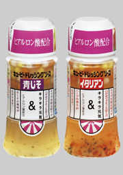 キユーピーは「キラキラ元気&」シリーズから、ヒアルロン酸配合の丸い「粒々」が入ったドレッシングソースを2008年5月16日に発売する。