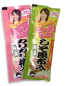 きざんだ梅漬けを混ぜた「カリカリ梅入 納豆」、青じその香りが食欲をそそる醤油ベースの「しそ昆布入 納豆」の2種類。スティック状の小袋に、つめられており、封を切れば、混ぜずにそのまま食べることができる。真鍋さんが2007年、「第4回納豆クイーン」に選ばれた縁で共同開発した。冷奴に納豆をトッピングして食べるというのは眞鍋さんのアイデアという。